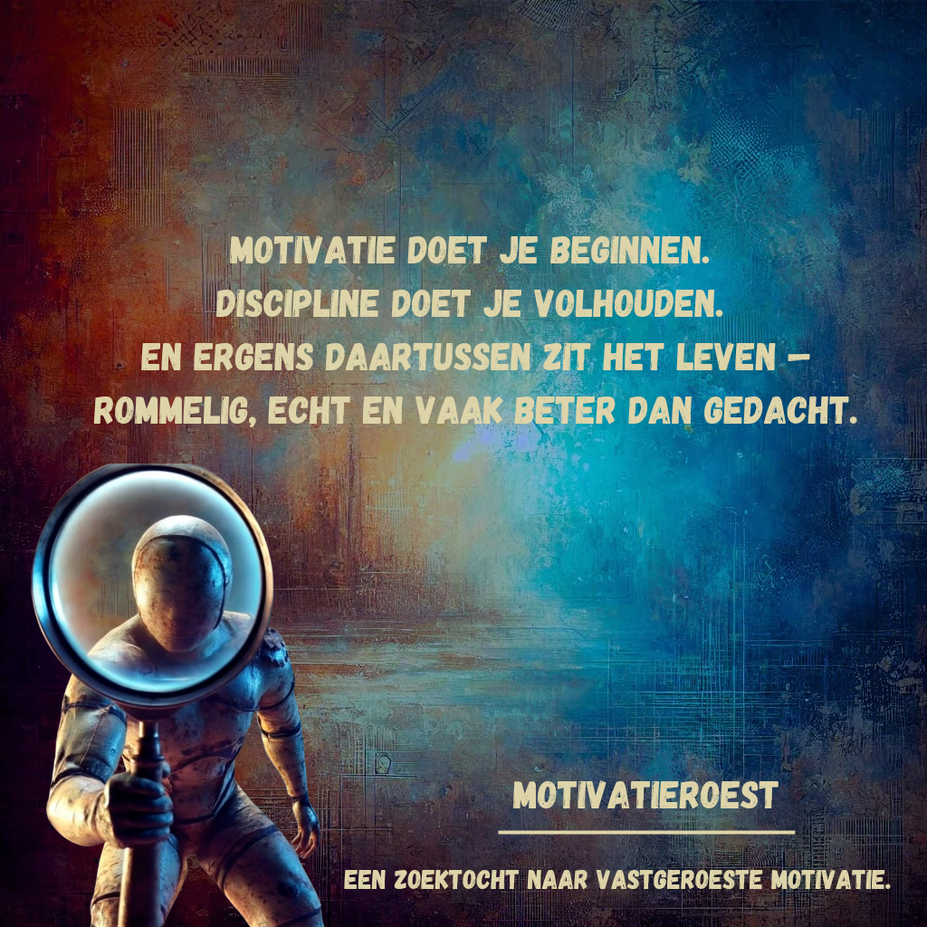 Motivatie is de vonk, discipline de brug. De eerste geeft zin, de tweede geeft richting. Zonder motivatie wordt discipline hard en mechanisch. Zonder discipline blijft motivatie een luchtbel.